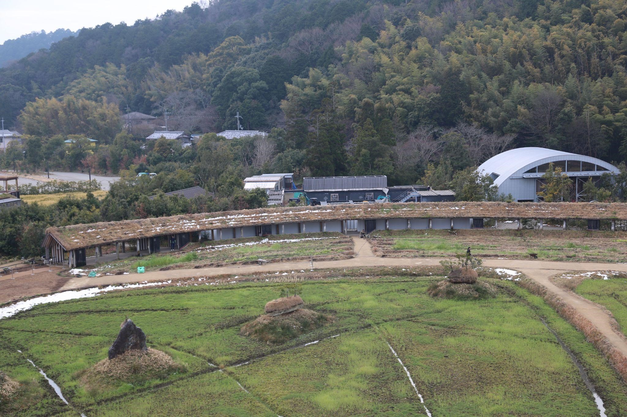 敷地内に入ると、田んぼを囲むように配置された建物たちが目に飛び込んできました。