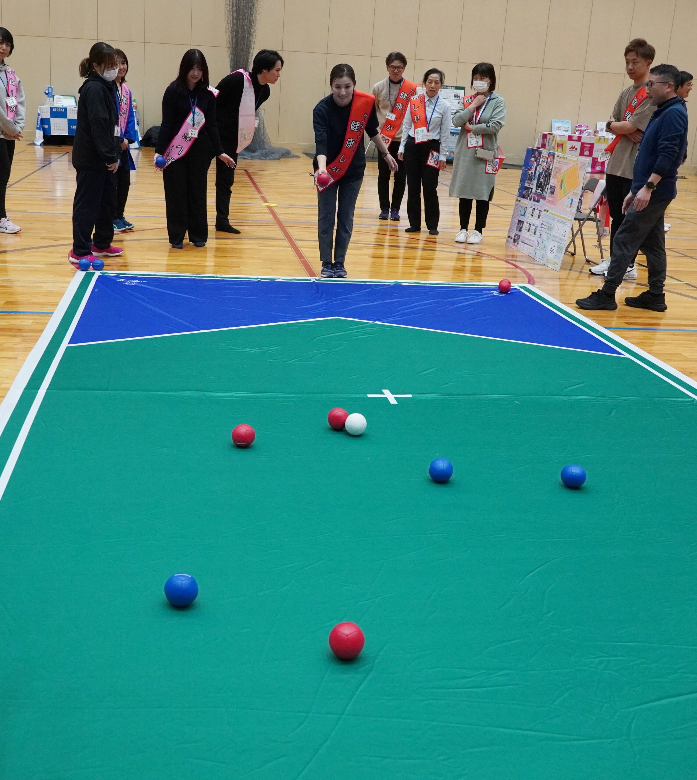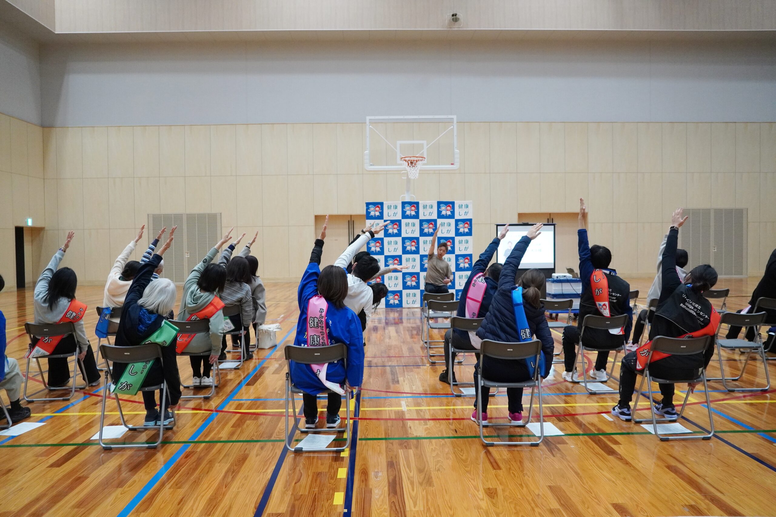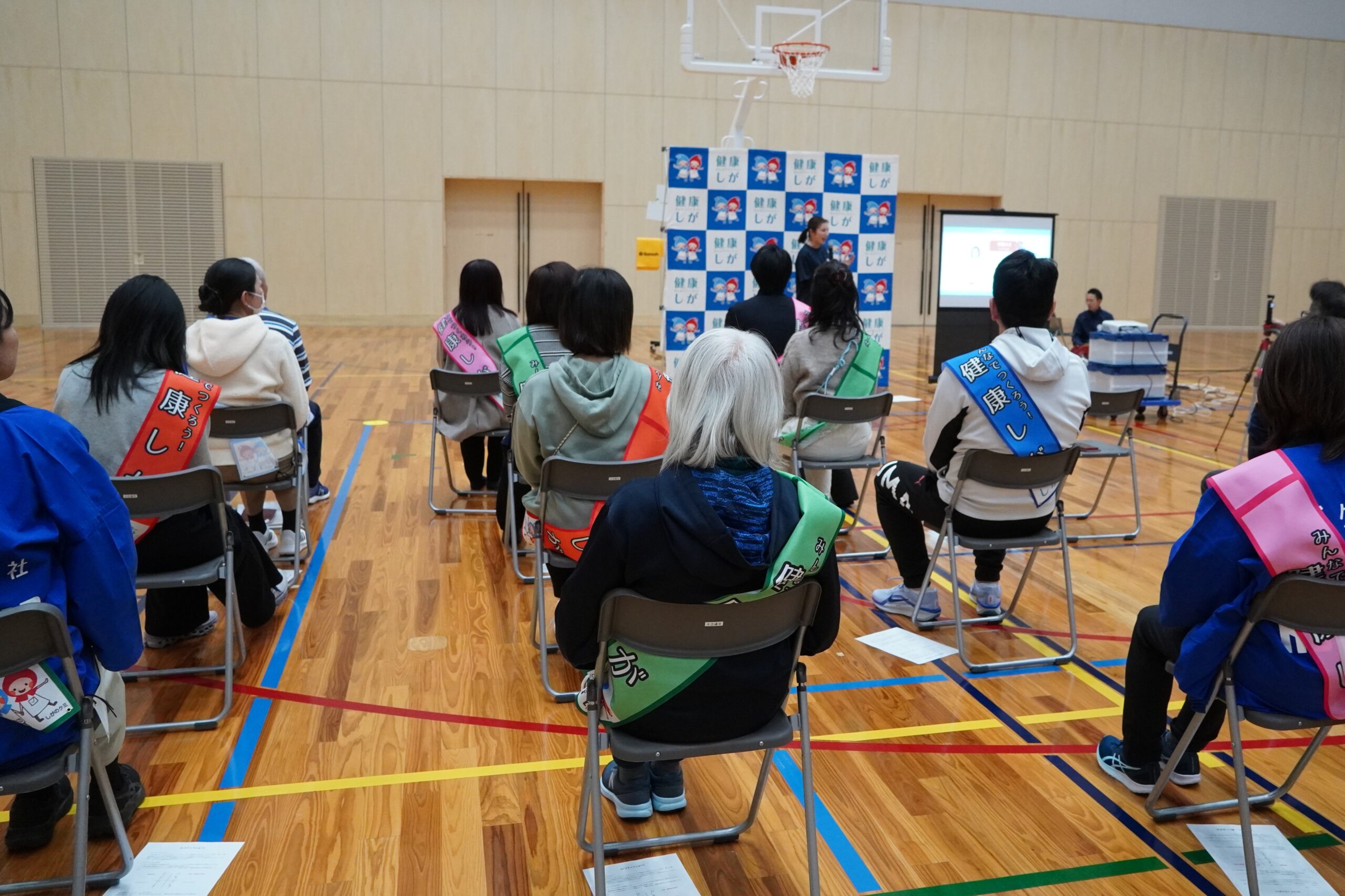 会場では伊藤みきさんの講演のほかにも、ピラティス体験やボッチャ、フリースロー、風船リレーなど、体を動かすプログラムが行われました。女性の健康をテーマにした○×クイズでは、更年期やがん、働き方に関する知識を学びながら、チームで交流を深めました。