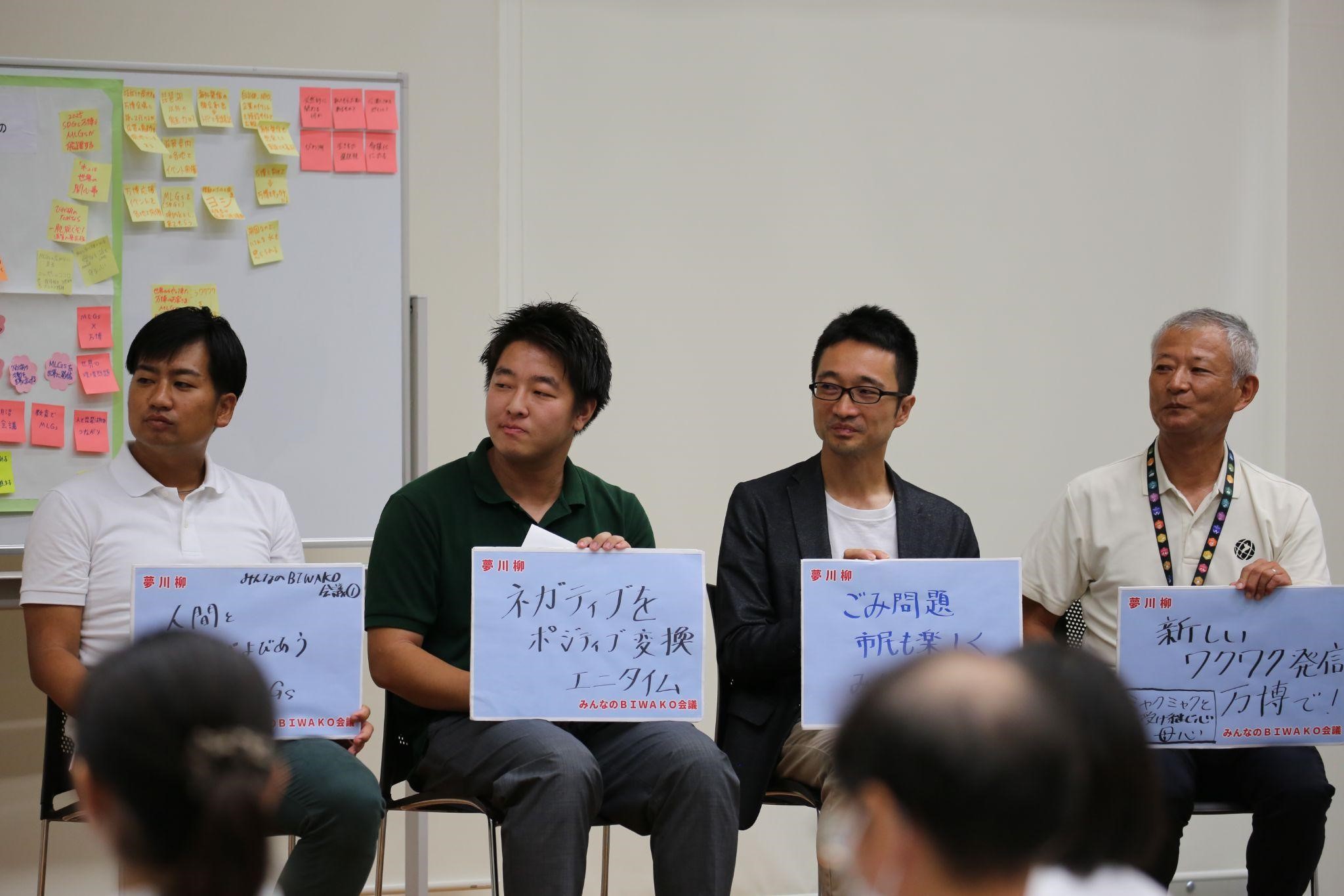 第4分科会は「新しい ワクワク発信 万博で」「ミャクミャクと 受け継ぐ心 母心」大阪万博に着目し、母なる湖というMLGsの根底に立ち返って全体を総括しました。