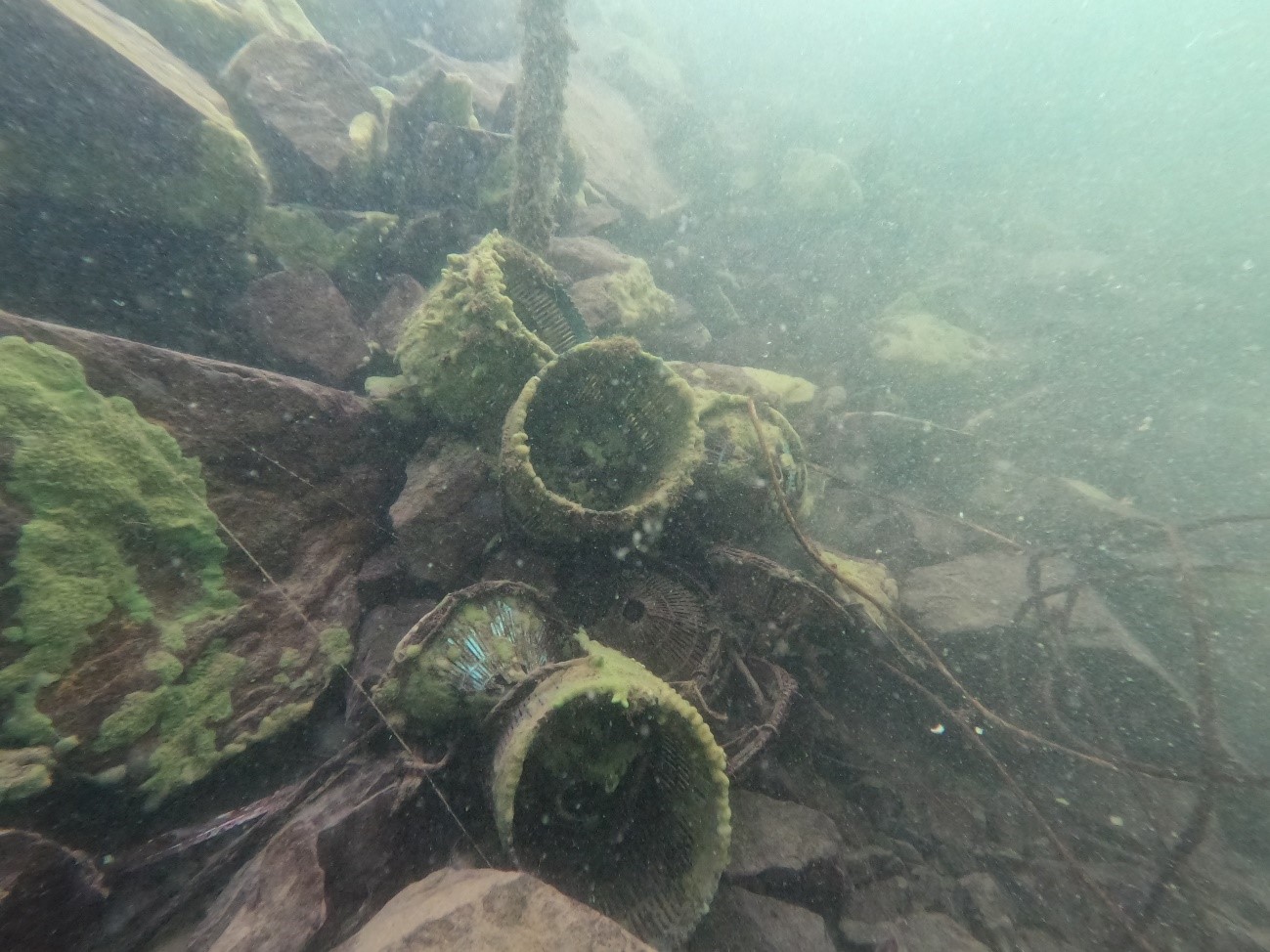 ダイバーが回収するゴミの中で多いのは、たつべ篭やルアーなど、漁や釣りで出たゴミだそう。