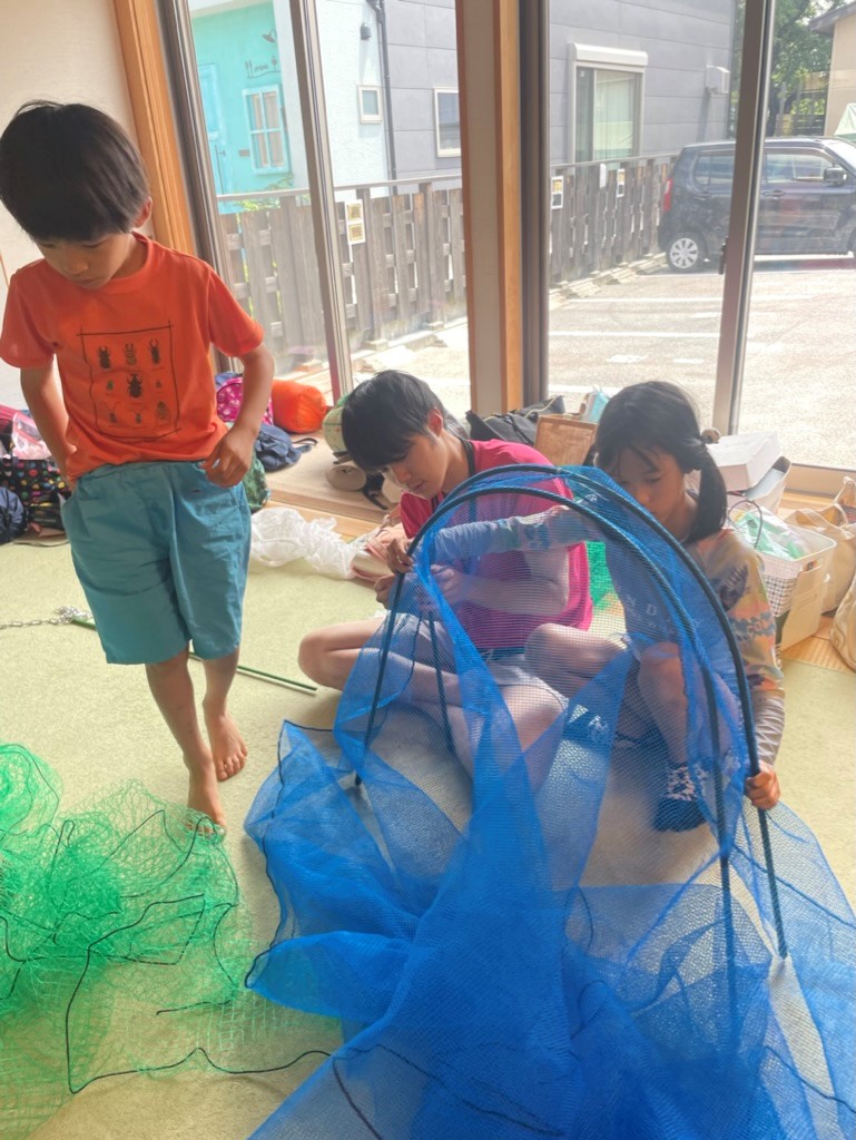 川では、子どもたちが熱心にプログラムに取り組んでいます