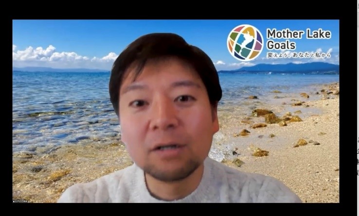 司会・進行はしがローカルSDGs研究会の「みーこさん」こと辻博子さんが行いました。最初の主催者挨拶をされたのは、MLGs推進委員会事務局で滋賀県琵琶湖保全再生課の小林匡哉さん。小林さんは「琵琶湖は昔より魚が捕れない、気温上昇で水が上手く循環しないといった、様々な問題があります。この問題に滋賀県や琵琶湖に関係する人みんなが行動しないと良くなっていかないと思います。また今回のプラスチックごみ問題も学んで、自分や皆で何ができるのか考える良い機会になると思っています」と語りました。