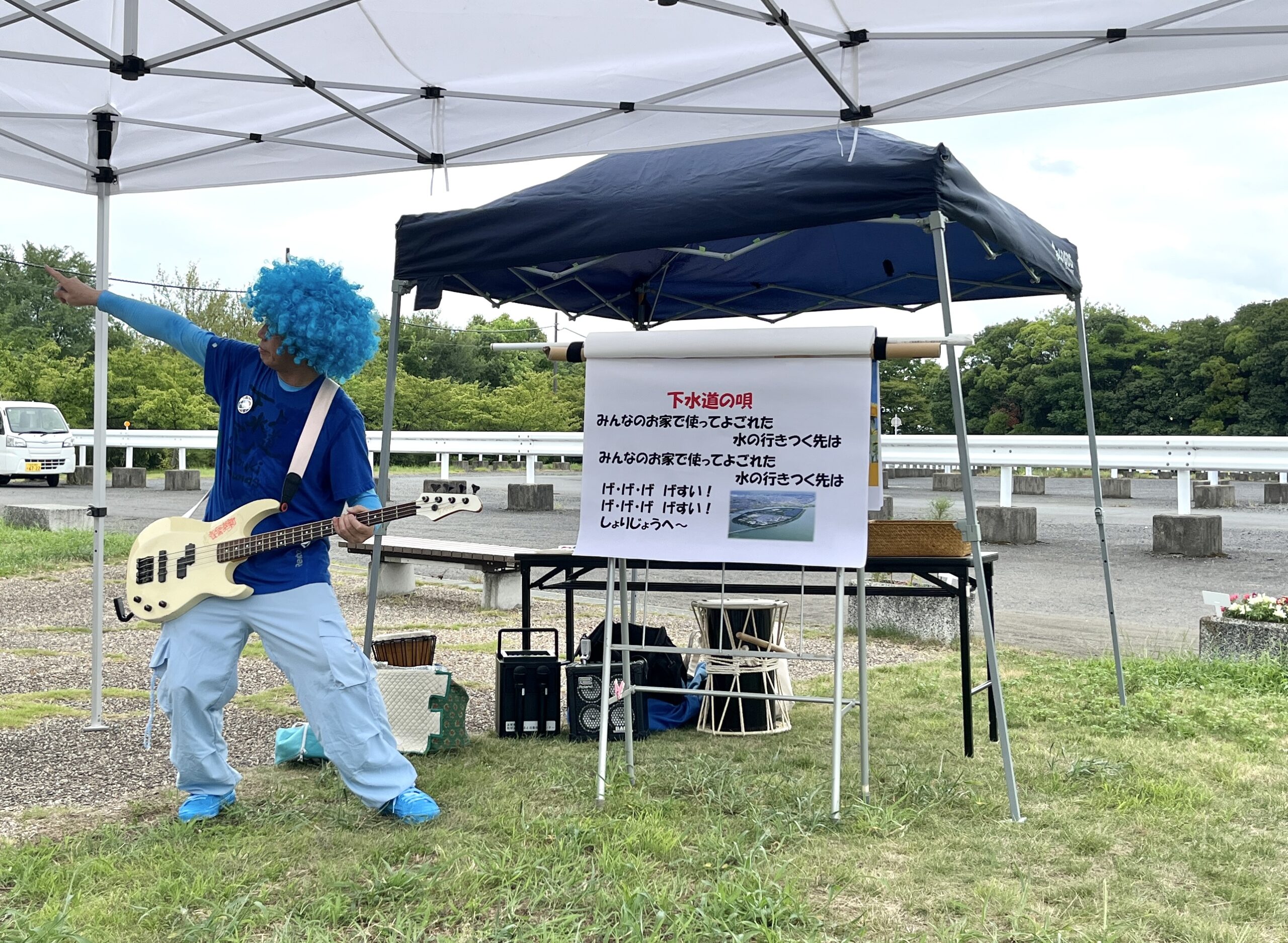 会場には、淡海環境プラザで活動する「下水道マン」も登場。「げ・げ・げ げすい〜!」のメロディーが耳に残る「下水道の歌」が披露され、子どもから大人まで多くの来場者の注目を集めました。