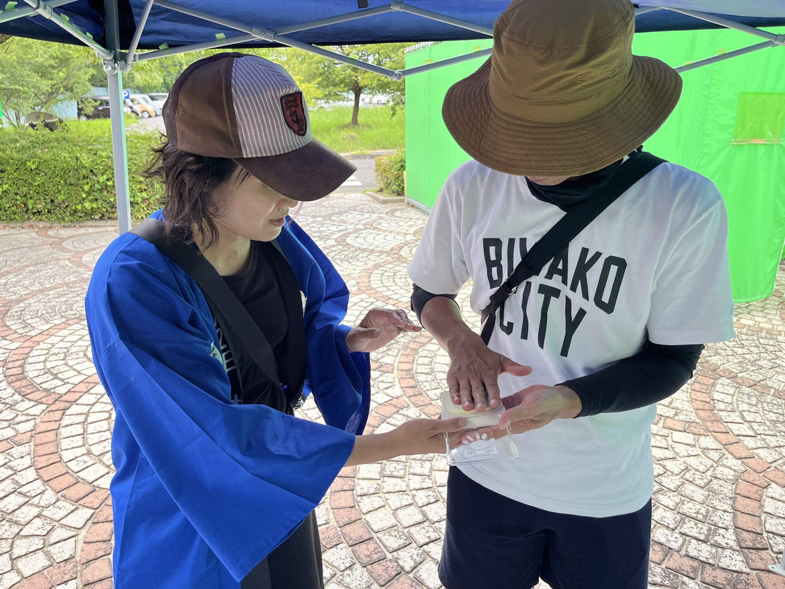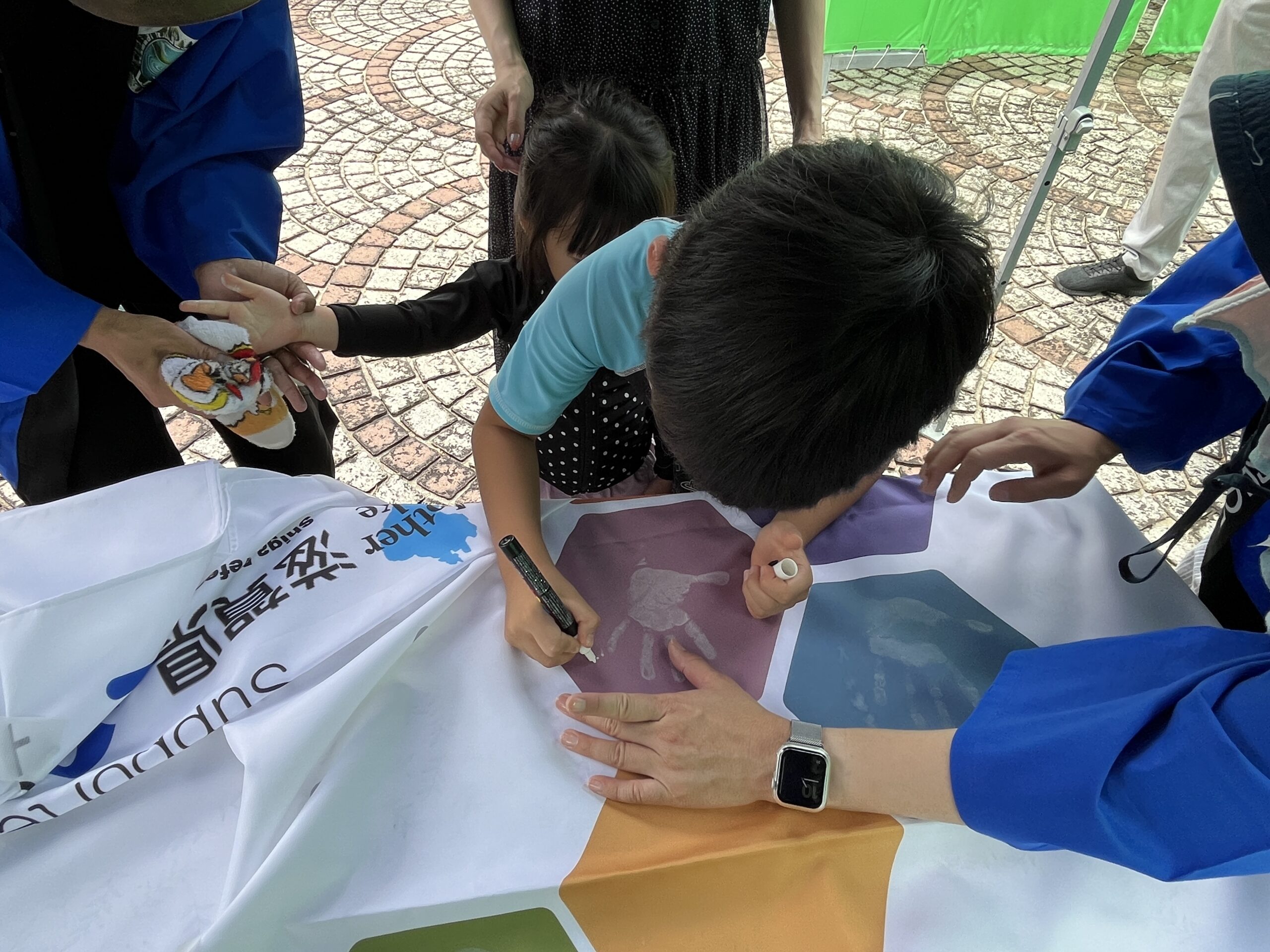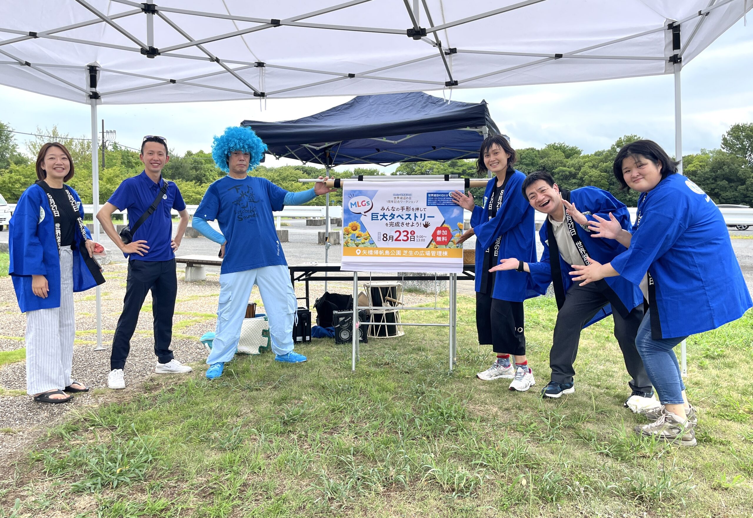 2025年8月23日(土)、草津市・矢橋帰帆島公園で「みんなの手形を押して巨大タペストリーを完成させよう!」(主催:こトモノ体験基地、マザーレイクゴールス推進委員会 協賛:株式会社日吉)のワークショップが開催されました。