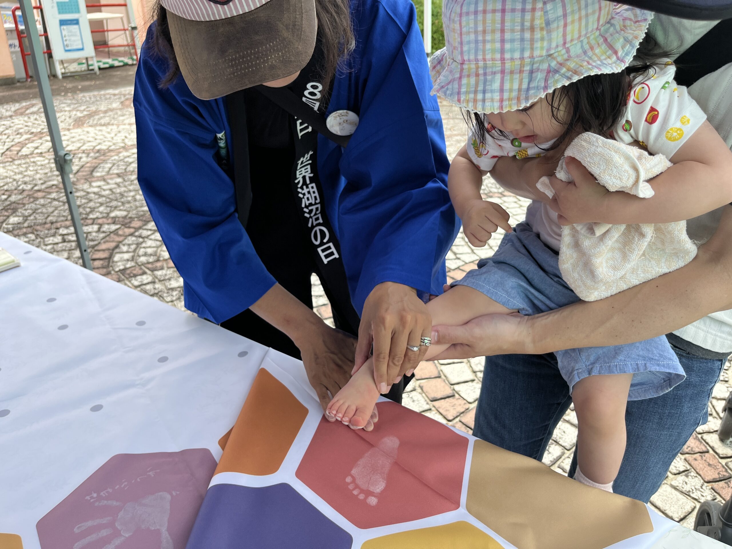 手形を押すのが難しかった小さなお子さんは、足形で参加いただきました。