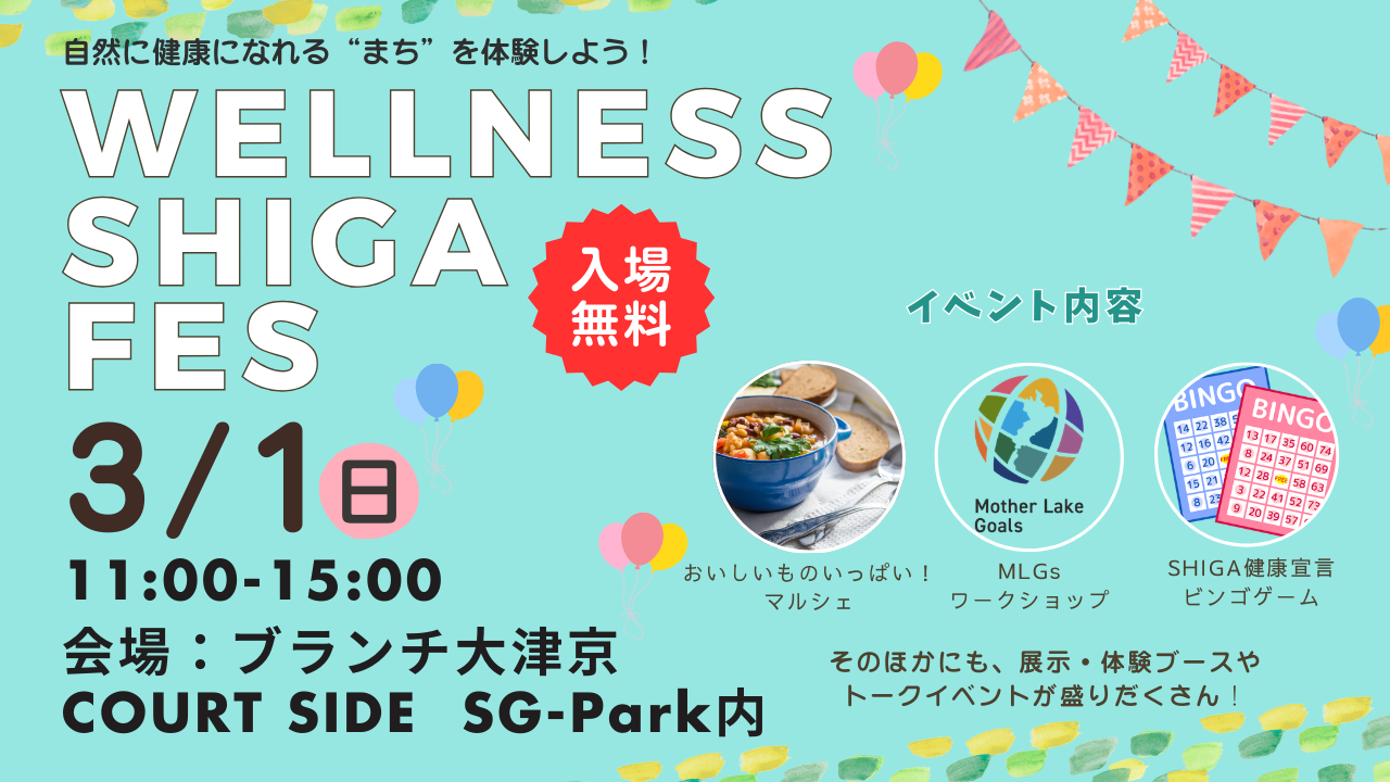2026年3月1日(日)ブランチ大津京SG-Park内 COURT SIDEにて「WELLNESS SHIGA FES」(ウェルネスシガフェス)が開催されます!
