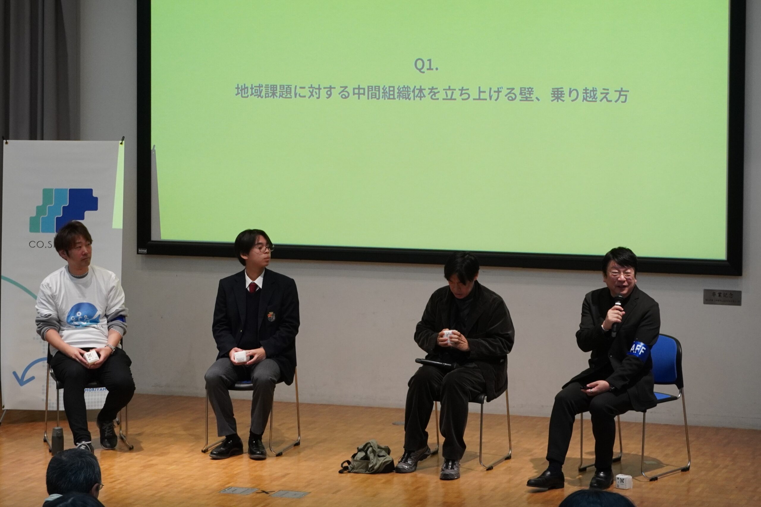 メディアホールでは、地域課題解決に向けた「共創」をテーマにしたトークセッションが行われました。