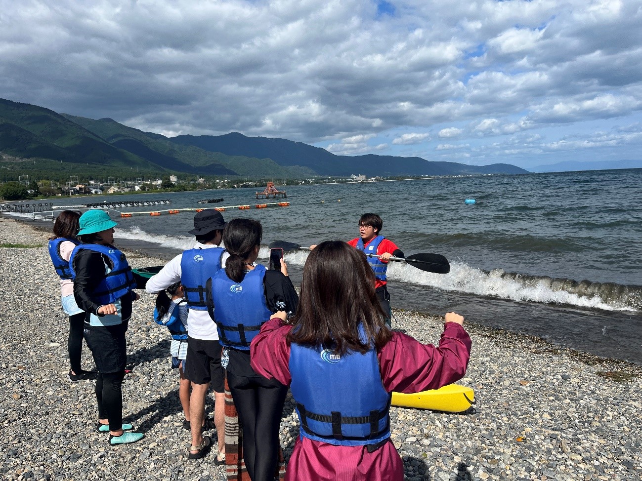 このイベントは家族と同僚と楽しむ校外学習をコンセプトに、参加者の皆様とカヤックを体験した後、MLGsについて学びを深める環境講話が行われました。