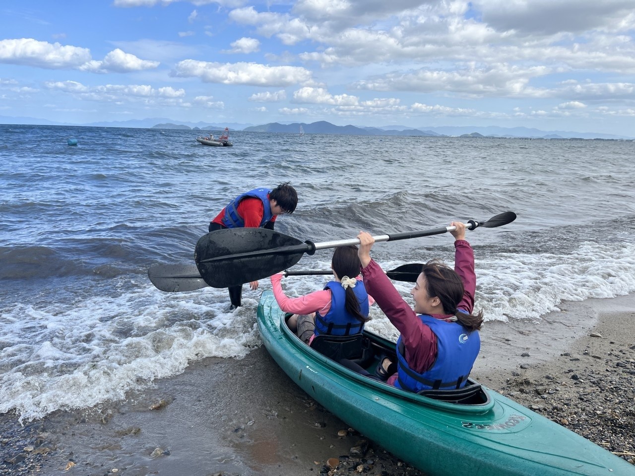 私自身、カヤックは初体験で乗った瞬間は不安もありましたが、少し漕ぐと風がとても気持ちよくリラックスして漕ぐことができました。パドルの扱いには苦戦しましたが…