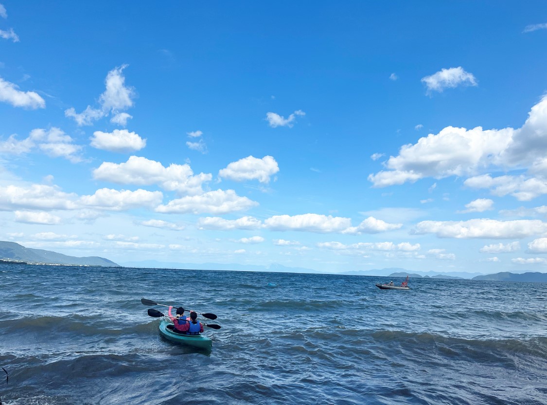 この日は高気圧の影響もあって少しびわ湖の波が高かったので、参加者全員が2人乗りに挑戦しました。